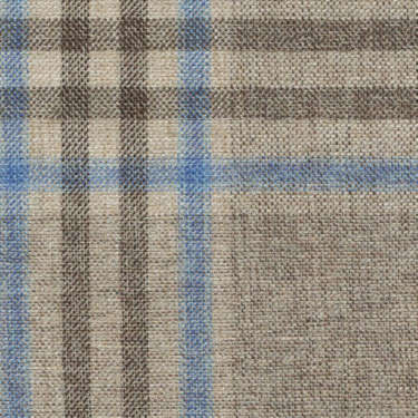 Veste sur-mesure coton, laine et soie sable tartan Prince de Galles bleu clair et marron